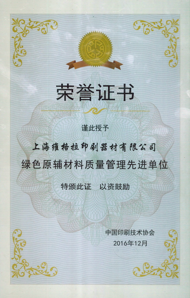 2016年12月28日下午,由国家新闻出版广电总局印刷发行司指导,由中国印刷技术协会主办的“绿色印刷总结表扬大会”在北京隆重举行。来自全国各个省市及自治区的绿色印刷企业代表、新闻出版局印刷主管领导及各地印刷协会的领导,以及绿色印刷原辅材料供应厂商的代表共二百余人参加了会议。会议由国家新闻出版广电总局印刷发行司司长兼中国印刷技术协会理事长王岩镔女士主持,国家新闻出版广电总局印刷发行司印刷复制处处长路洲先生作了十二五绿色印刷工作总结,他指出至今已有1031家印刷企业通过绿色印刷认证,十二亿册中小学教科书和一亿册青少年读物实现了绿色印刷,60%的票据实现了绿色印刷。最后他指出,实施绿色印刷责任重大、任务艰巨,还需行业内的各位同仁团结奋斗、继续坚定不移地推动绿色印刷实施。环保部科技标准司司长邹首民做了重要讲话,对十二五期间印刷行业推行的绿色印刷做了充分肯定。最后由国家新闻出版广电总局副局长阎晓宏讲话,强调了印刷行业需贯彻落实新发展理念,稳中求进,继续坚定不移的推动绿色印刷的实施。根据国家新闻出版广电总局新广出函(2016)412号“关于表扬十二五时期实施绿色印刷工作先进单位的通报”,对在十二五时期推行绿色印刷作出显著成效的127家单位给予通报表扬,上海维格拉印刷器材有限公司很荣幸也名列“绿色原辅材料质量管理先进单位”表扬榜单。